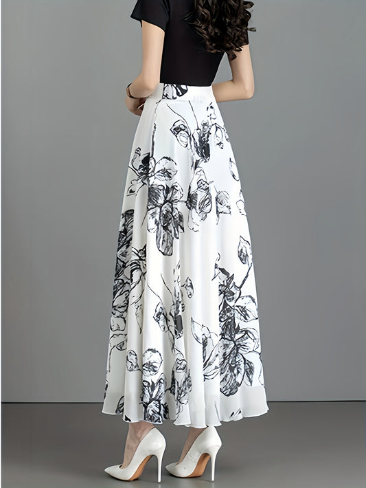 Elegant Black Floral Print Midi Skirt for Women