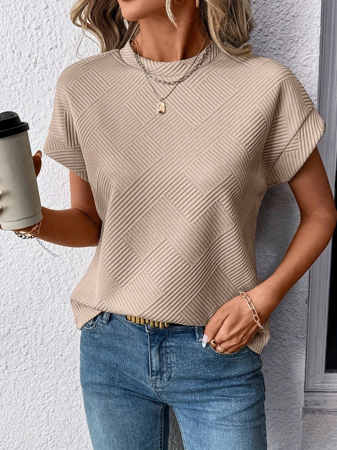 Elevate your spring and summer wardrobe with our chic top, made from 100% high-quality polyester. This stylish piece features a crew neck design and micro elasticity for an exceptional, comfortable fit.