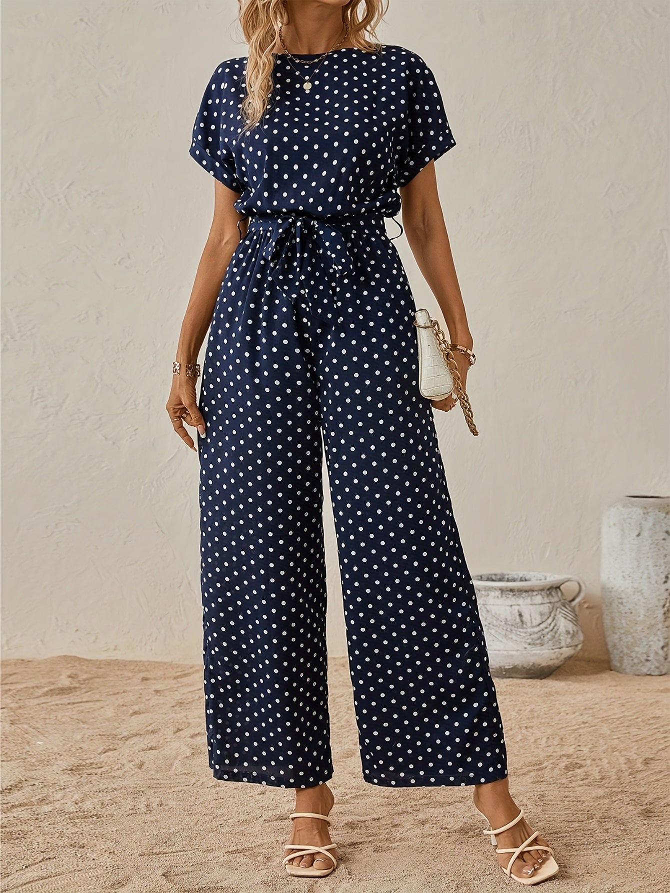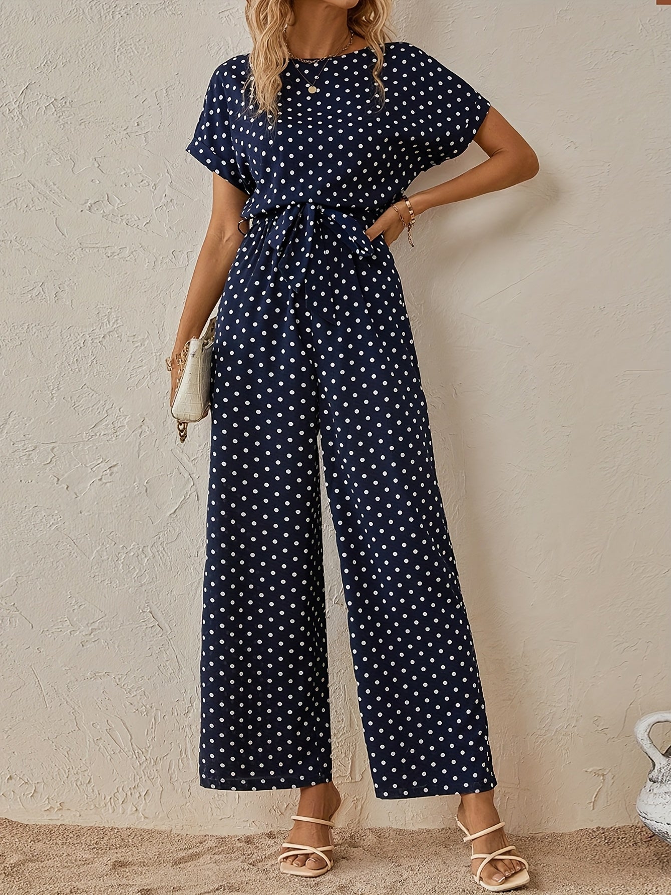 Polka Dot Batwing Jumpsuit with Waist Tie