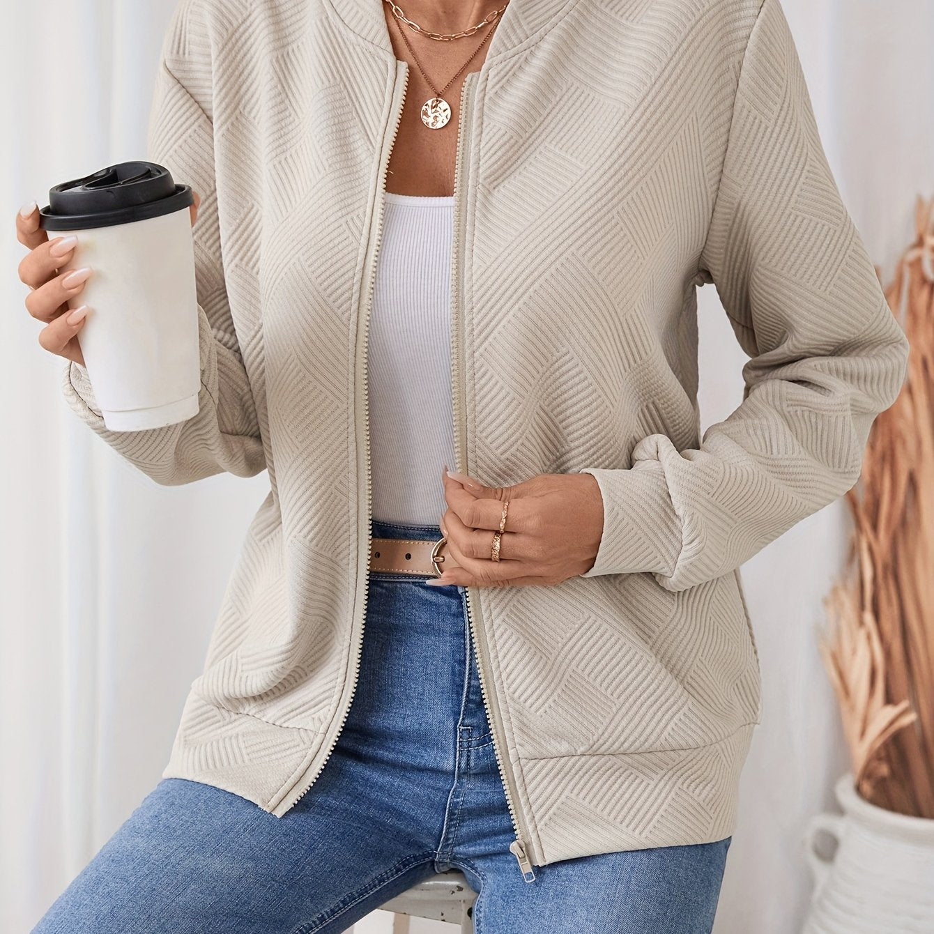 Designed for easy care, it can be machine washed or professionally dry cleaned. The baseball collar adds a trendy touch, making it ideal for any casual or semi-formal occasion. This jacket is your go-to choice for chic autumn and winter styling.