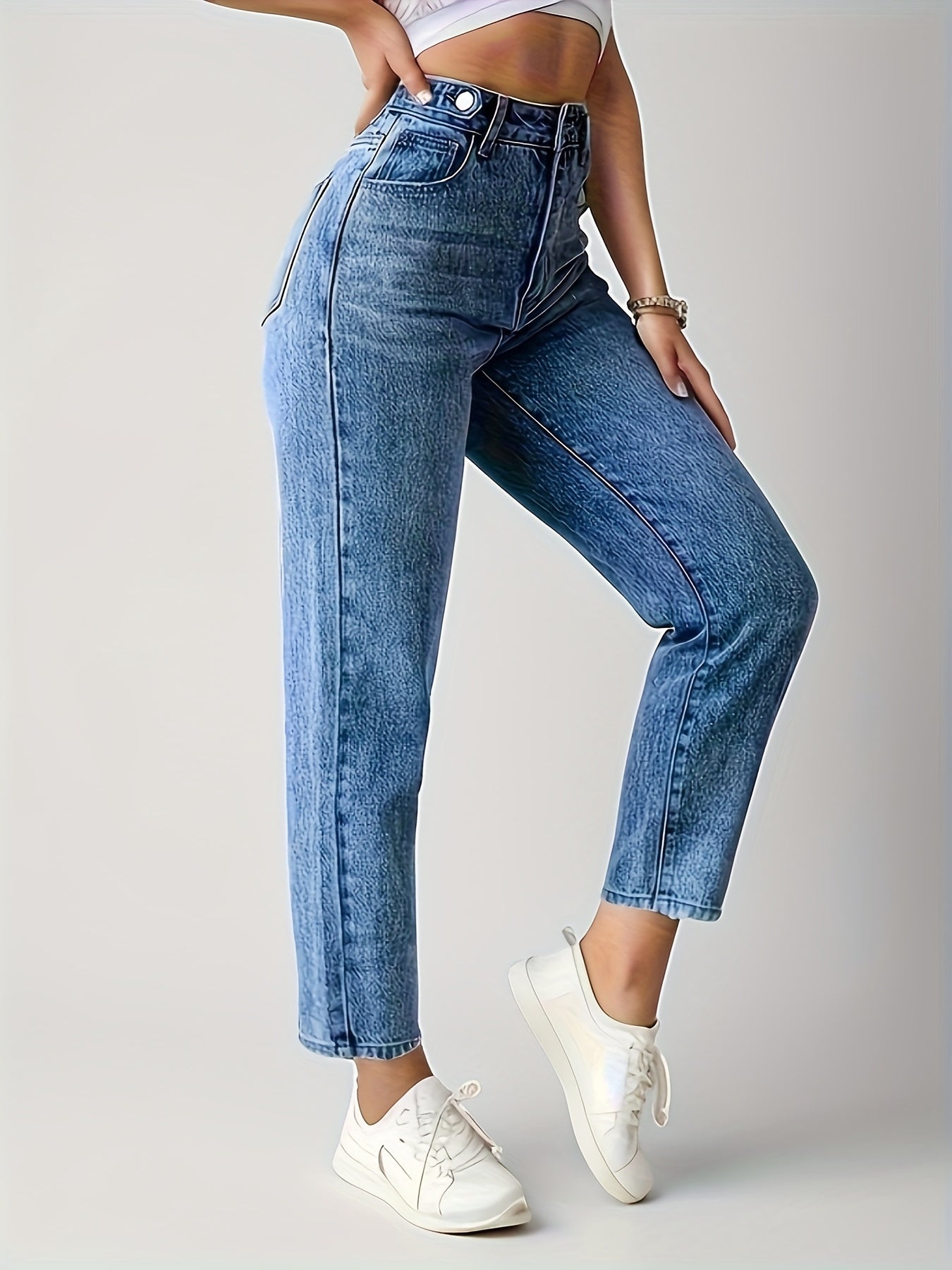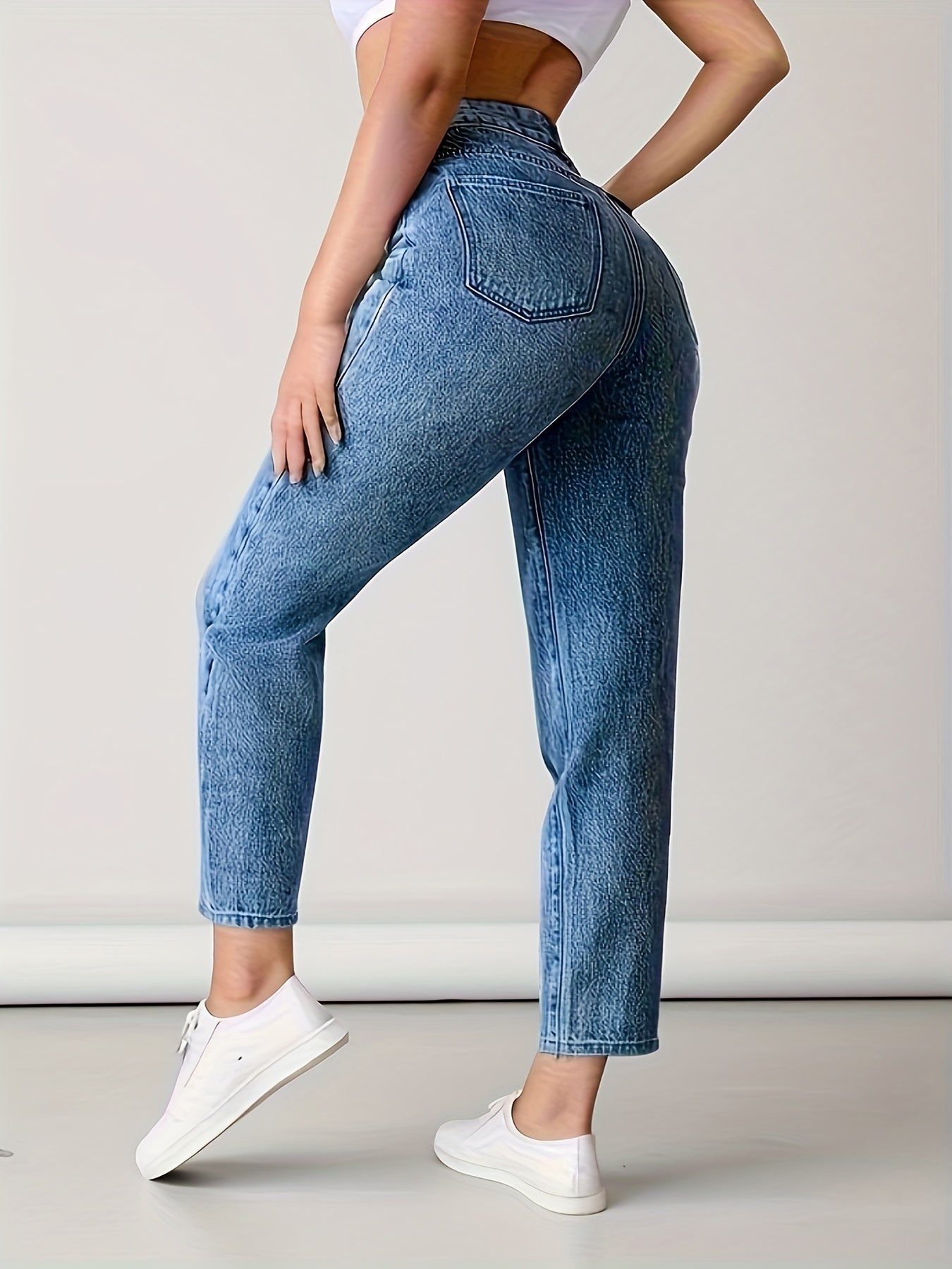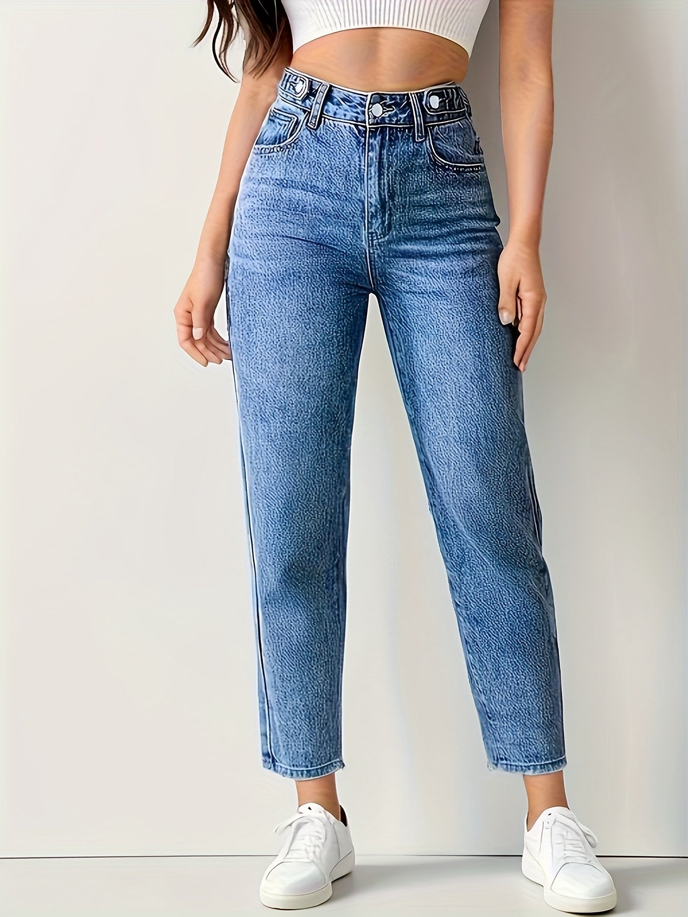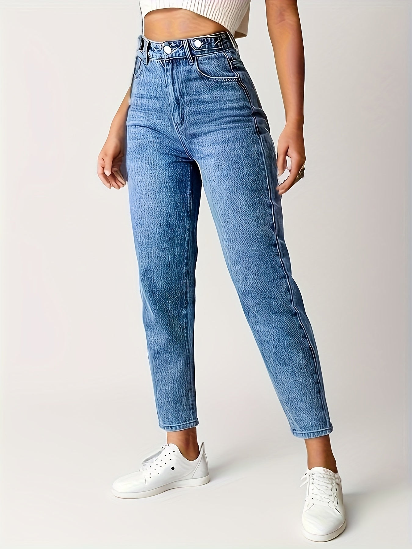 Discover our Cropped Mom Fit Denim Pants, crafted from 71% Cotton for ultimate comfort. Featuring a stylish solid color design, these pants are perfect for any casual occasion.